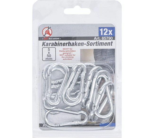 Produktinformationen "BGS TECHNIC Karabinerhaken-Sortiment, 5 x 50 mm, 12-tlg,"