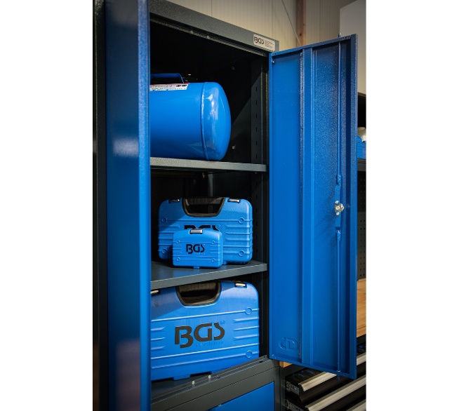 Mit dem BGS TECHNIC Schrankwand-System Kompakt richtest du deine Werkstatt professionell, sicher und übersichtlich ein. Hochwertige Materialien, durchdachte Details und flexible Module sorgen für maximale Effizienz und Ordnung am Arbeitsplatz.