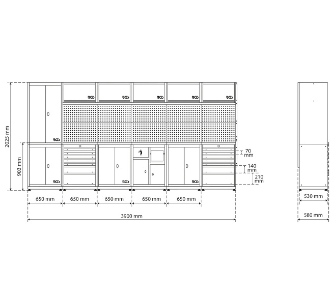 - mit Lochwandaufbau zur individuellen und übersichtlichen Lagerung von Werkzeugen