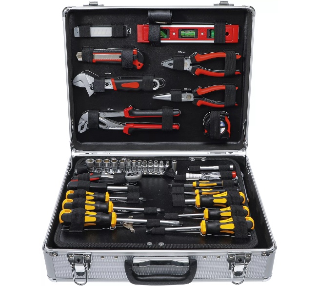 Mit dem 129-teiligen Werkzeug-Satz von BGS TECHNIC bist du für nahezu jede Reparatur bestens ausgestattet. Der robuste, abschließbare Aluminiumkoffer mit Klappboden sorgt für Ordnung, Übersicht und sicheren Transport.