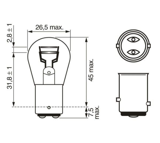 - 12 Volt, 21/5 Watt – ideal für Brems-, Rück- und Schlusslichter