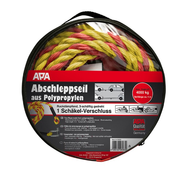 Dieses Abschleppseil ist zum Abschleppen von Fahrzeugen mit einer max. Zugkraft von 4000 kg. Das Abschleppseil ist in einer praktischen Klarsichttasche mit Reißverschluss verpackt.