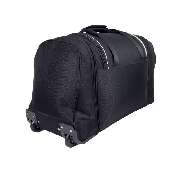 Ausgestattet mit Gummirädern und einem Teleskopgriff eignet sich die Tasche sowohl für Flugreisen als auch für Wochenendausflüge. Ein spezielles Fach ermöglicht die Aufbewahrung von Gegenständen, die getrennt werden müssen, wie Schuhe oder Sportausrüstung.