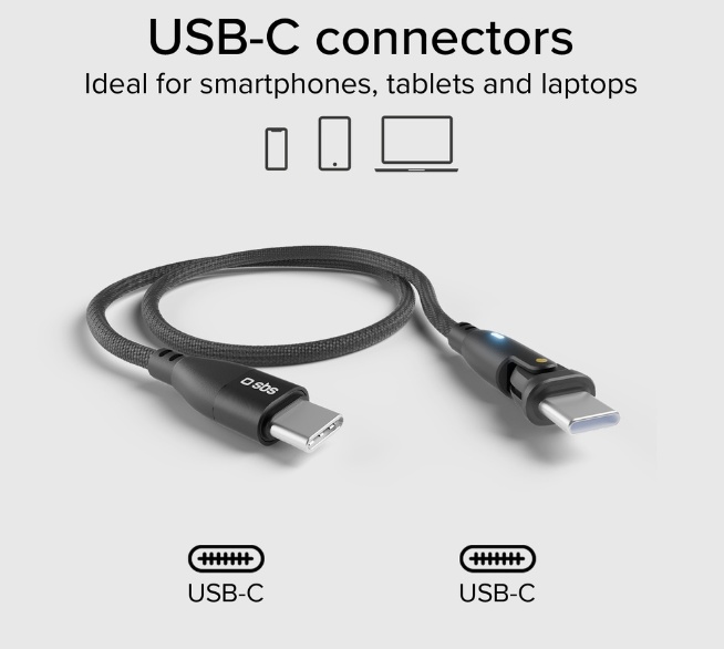 Produktinformationen "SBS Daten/Ladekabel USB-C 60W drehbarer Stecker, 1m"