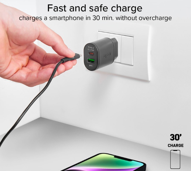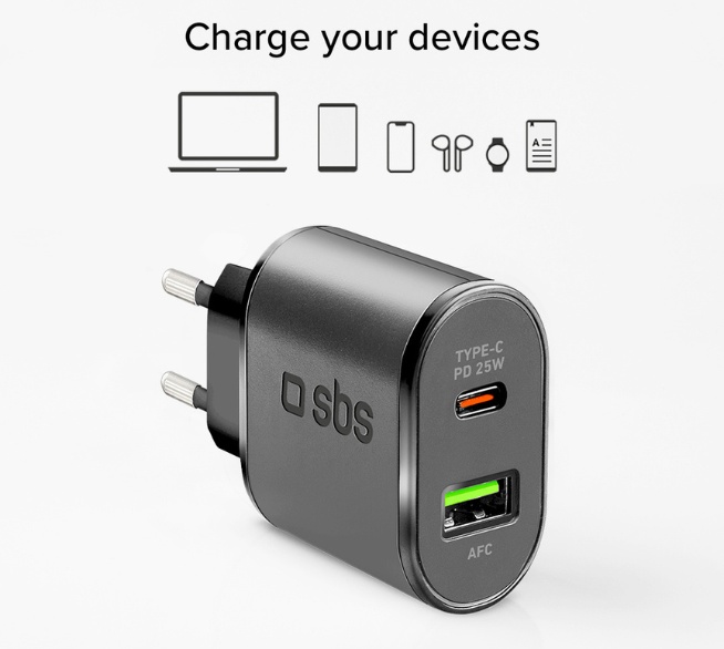 Produktinformationen "SBS Netzlader 1x USB-C, 1x USB-A, 25W"