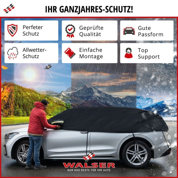 Unser Autoabdeckplane All Weather, ist die ideale Lösung, wenn Ihr Auto im Freien steht und Sie keine Garage besitzen. Sie bietet perfekten Schutz vor Verschmutzungen und Witterungseinflüssen, sodass Ihr Fahrzeug immer in bestem Zustand bleibt. Vertrauen Sie auf bewährte Qualität von WALSER und schützen Sie Ihr Auto!