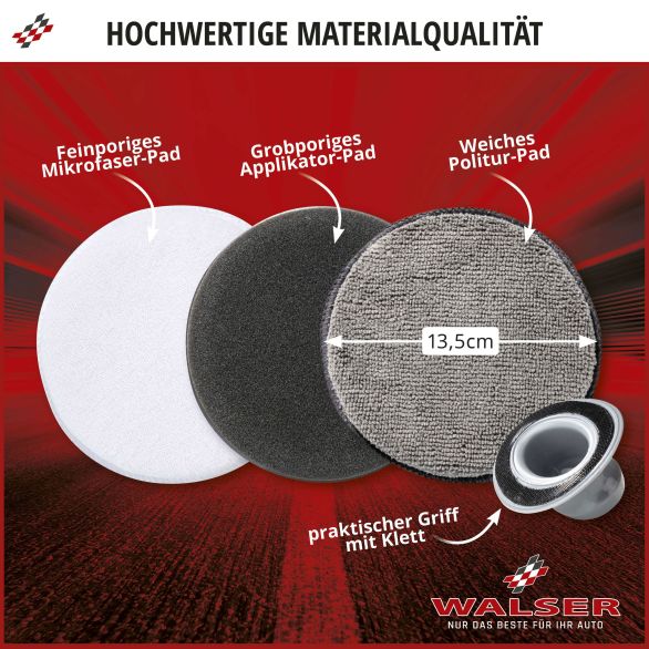 Produktinformationen "WALSER Applikator Kissen Set mit 3 Polierpads und Griff, 3 Politur Schwämme"
