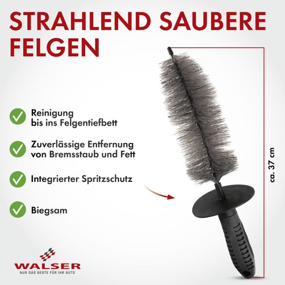 Produktinformationen "WALSER Felgenbürste mit Borsten und Spritzschutz 37 cm schwarz-grau"