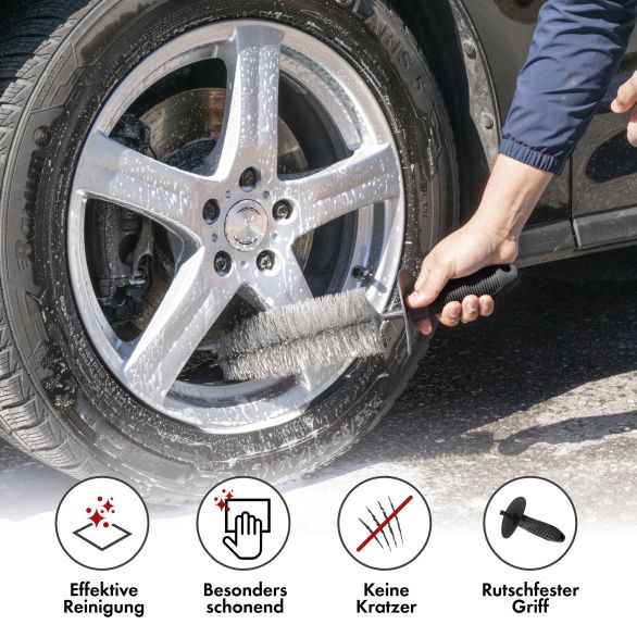 Haben Sie saubere Felgen? Falls nein, entscheiden Sie sich für unsere Felgenbürste, um Ihre Autofelgen optimal zu pflegen. Unsere Felgenbürste ermöglicht eine schonende, aber effektive Reinigung, entfernen mühelos Schmutz und bieten eine kratzfreie Lösung für eine langanhaltende Brillanz. Erleben Sie makellose Ergebnisse und schützen Sie gleichzeitig Ihre wertvollen Felgen.