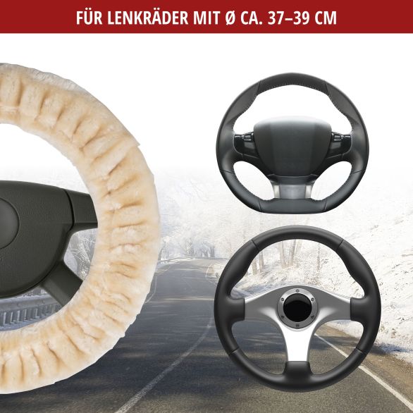 Der Lenkradbezug wird aus sehr weichem Kunstfell hergestellt und überzeugt mit erstklassiger Verarbeitung. Aufgrund der Ausführung mit elastischen Einfassbändern lässt sich der Lenkradbezug auf alle Lenkräder mit einem Durchmesser von ca. 38-39 cm aufziehen. Somit ist der Bezug für die meisten gängigen Lenkradgrößen passend und schnell montiert.