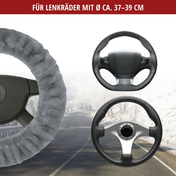 Der Lenkradbezug wird aus sehr weichem Kunstfell hergestellt und überzeugt mit erstklassiger Verarbeitung. Aufgrund der Ausführung mit elastischen Einfassbändern lässt sich der Lenkradbezug auf alle Lenkräder mit einem Durchmesser von ca. 38-39 cm aufziehen. Somit ist der Bezug für die meisten gängigen Lenkradgrößen passend und schnell montiert.