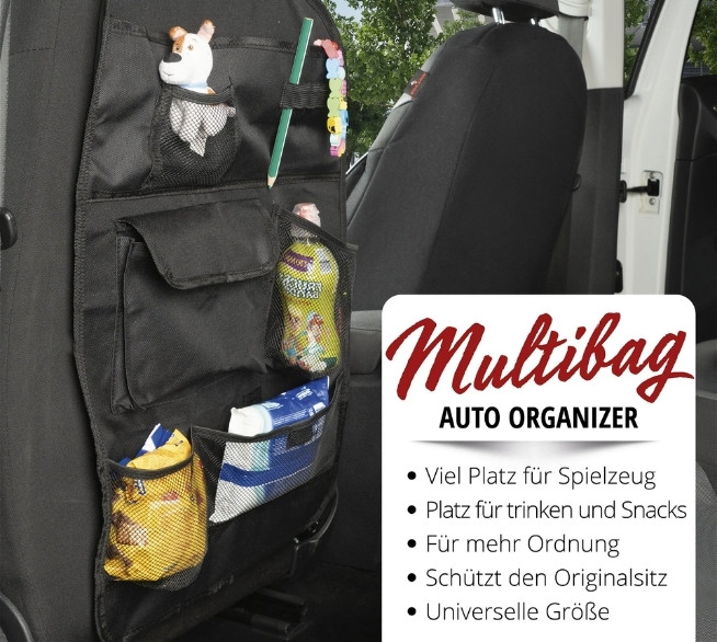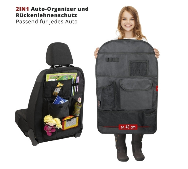 Du möchtest dein Auto sauber halten und gleichzeitig alles Wichtige für Mitfahrer schnell zur Hand haben? Der WALSER Multibag Auto Organizer sorgt für Ordnung, schützt den Sitz und macht jede Fahrt angenehmer – besonders mit Kindern.