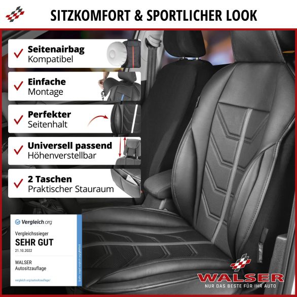 Produktinformationen "WALSER PKW Sitzauflage Kimi im Rennsportdesign schwarz/grau, 1 Stück"