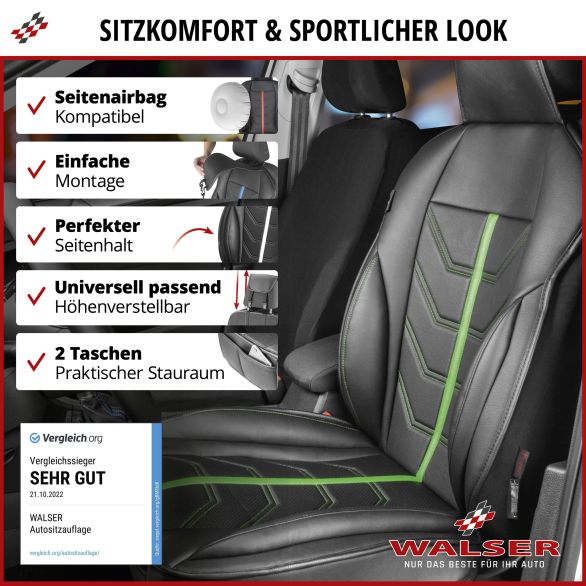 Produktinformationen "WALSER PKW Sitzauflage Kimi im Rennsportdesign schwarz/grün, 1 Stück"