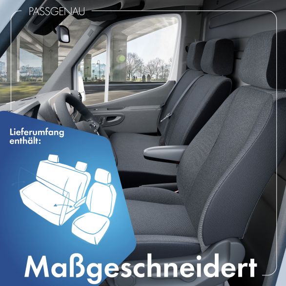 Produktinformationen "WALSER Passform Sitzbezug aus Stoff, Ford Transit, 1 Einzelsitz vorne (Aussparung Armlehne) & Doppelbank vorne klappbar"