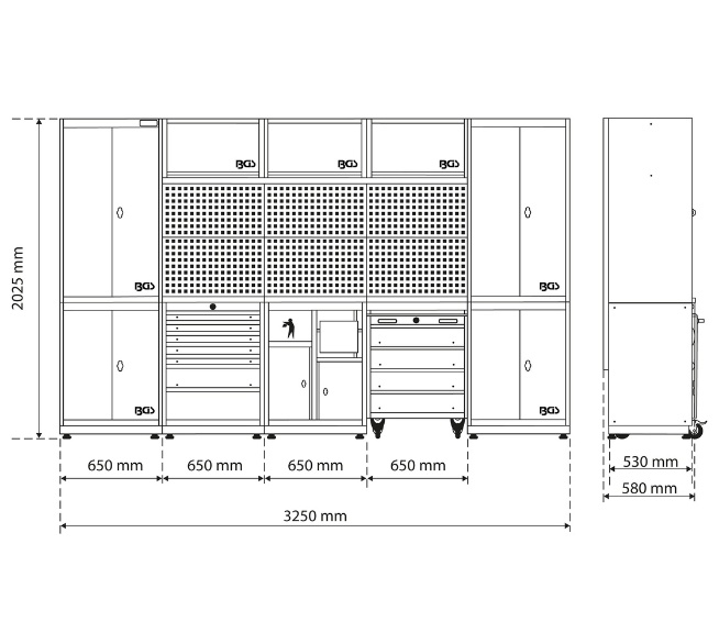 - mit Lochwandaufbau zur individuellen und übersichtlichen Lagerung von Werkzeugen