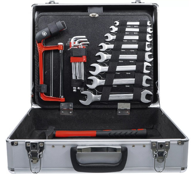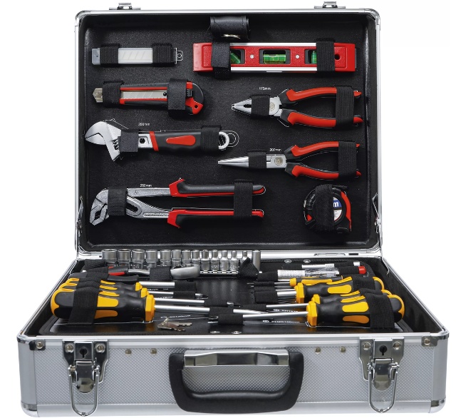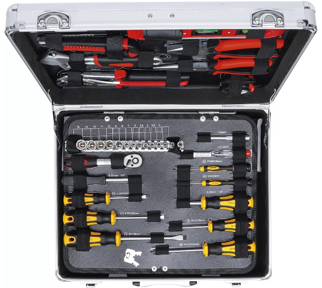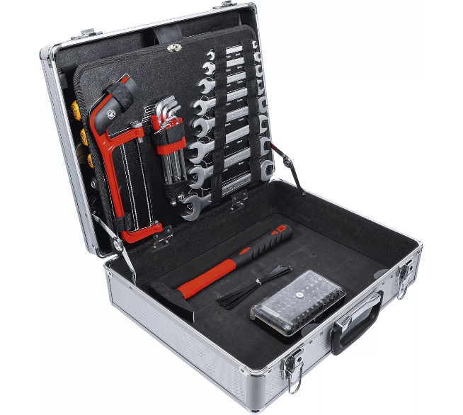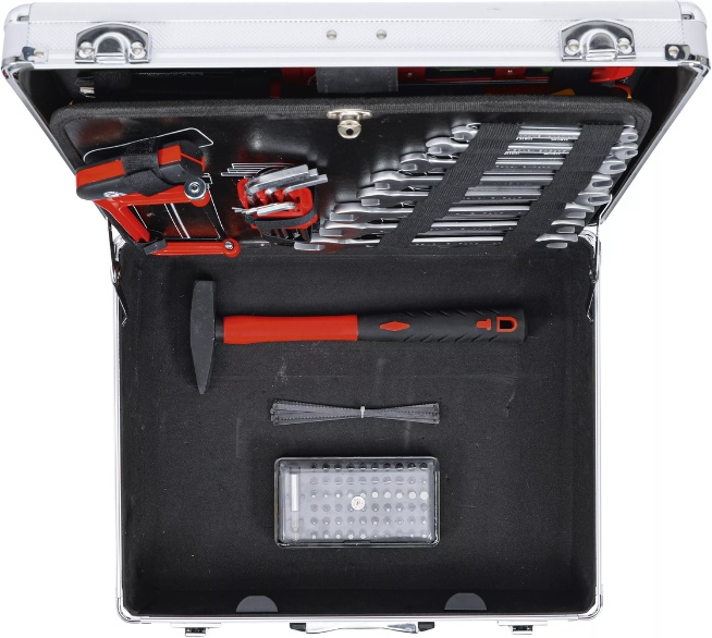 Mit dem 129-teiligen Werkzeug-Satz von BGS TECHNIC bist du für nahezu jede Reparatur bestens ausgestattet. Der robuste, abschließbare Aluminiumkoffer mit Klappboden sorgt für Ordnung, Übersicht und sicheren Transport.