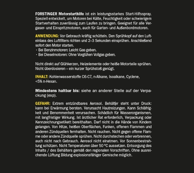 Produktinformationen "FORSTINGER Motor Starthilfe Spray 600 ml"