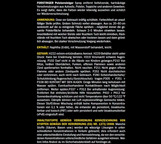 | FORSTINGER_Polsterschaum-Reiniger_600ml_Sicherheitsdatenblatt_26360973 | Download |