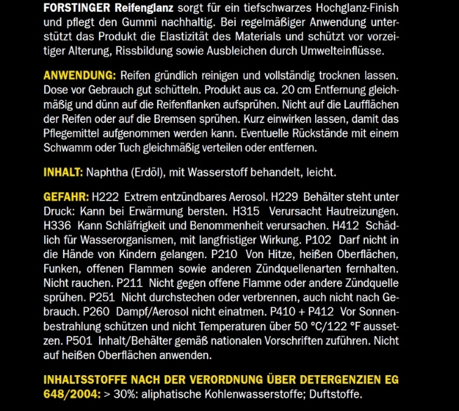 | FORSTINGER_Reifenglanz-Spray_600ml_Sicherheitsdatenblatt_2630942 | Download |
