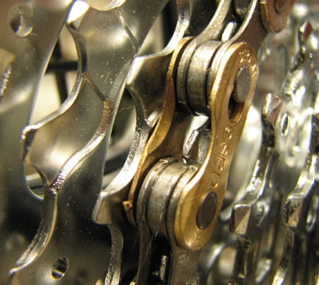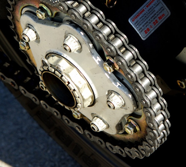 - Kettenspray gleichmäßig auf die Kette sprühen.