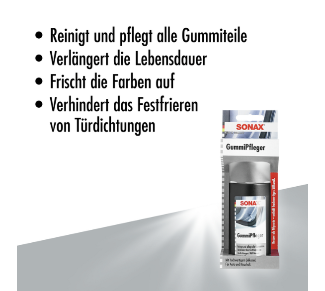 - Reinigt und pflegt alle Gummiteile am Auto und hält sie elastisch