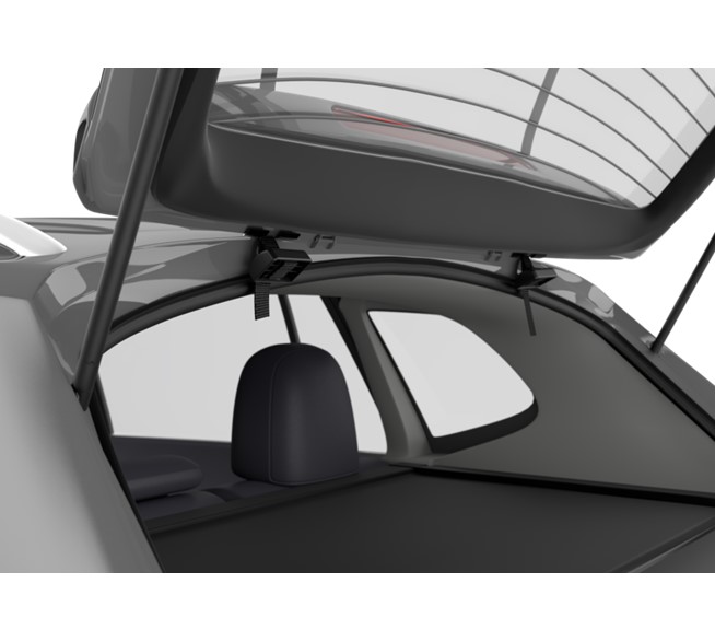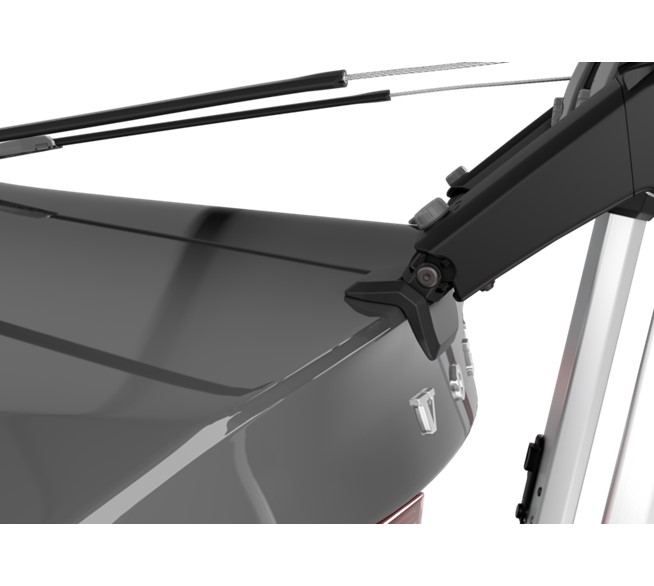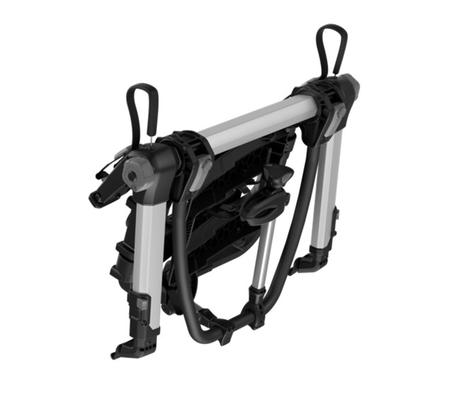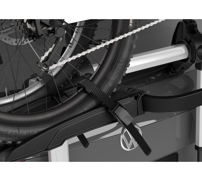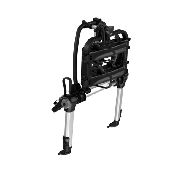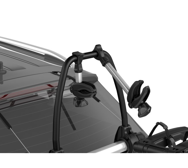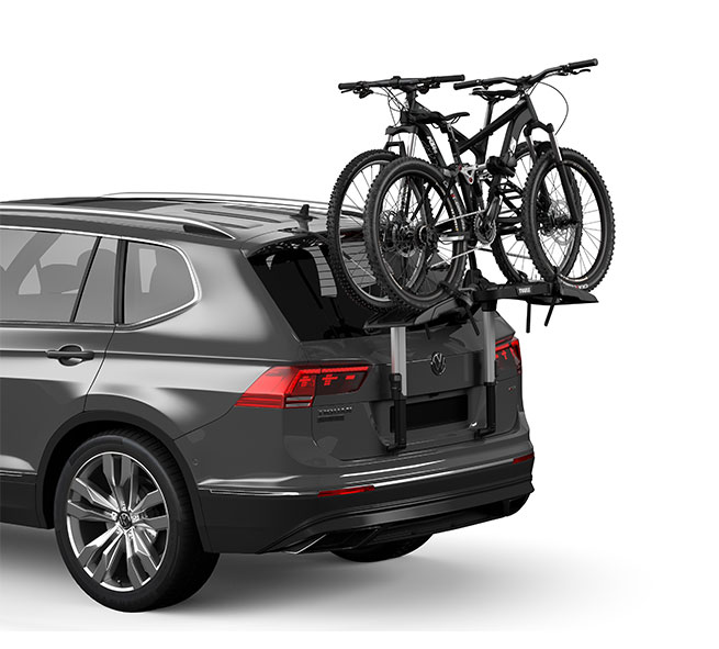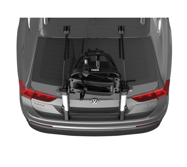 Thule Fahrradträger für unkomplizierte Ausflüge mit erhöhter Plattform, bei der die Rückleuchten und das Kennzeichen sichtbar bleiben.