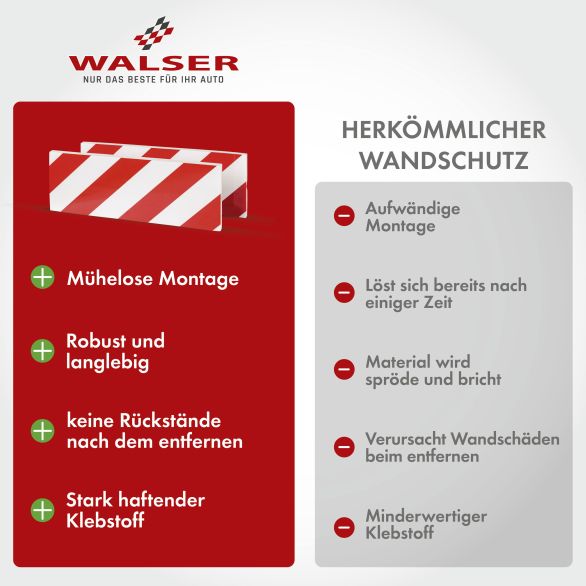 Produktinformationen "WALSER Garagen-Wandschutz, 2 Stück Auto-Türkanten-Schutz selbstklebend 40x15x1,5 cm rot/weiß"