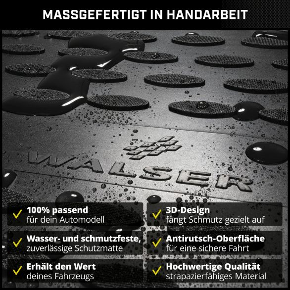 Im Winter ist der Fußraum deines PKWs besonders hohen Belastungen ausgesetzt. Schnee, Split und Salz bringen viel Nässe und Schmutz in das Auto, weshalb gerade jetzt ein hochwertiger Schutz viel Wert ist. Um den harten Anforderungen gerecht zu werden, ist die Automatte XTR die optimale Lösung speziell für dein Automodell. Die Passform Automatten XTR sind maßgeschneidert für deinen PKW und bieten zuverlässigen und dauerhaften Schutz.