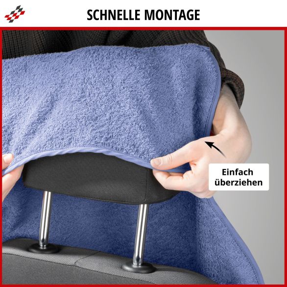 Das Multicover mit integrierter Kopfstütze ist sehr einfach zu beziehen. Sie stülpen den Sitzaufleger einfach über die Kopfstütze, legen ihn schön auf den Autositz und schließen den Schnappverschluss hinter dem Sitz. Schon ist der Bezug bereit für seinen Einsatz.