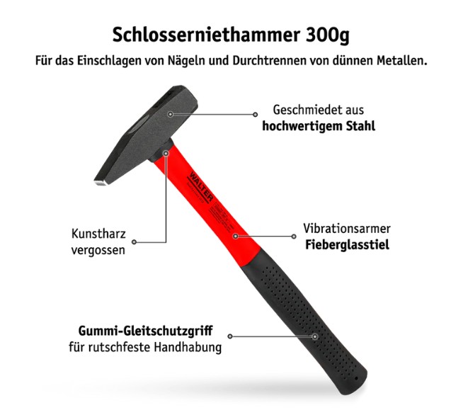 - 4 verschiedene Hammerarten für jede Aufgabe