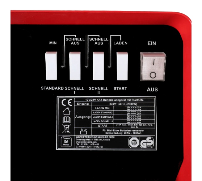 Produktinformationen "WALTER-WERKZEUGE KFZ-Batterieladegerät mit Starthilfe"