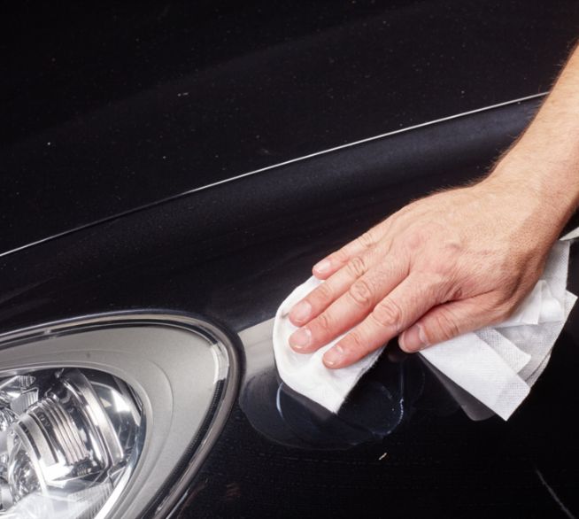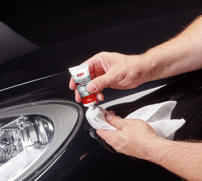 - Kratzerpolitur oder Lackreiniger auftragen